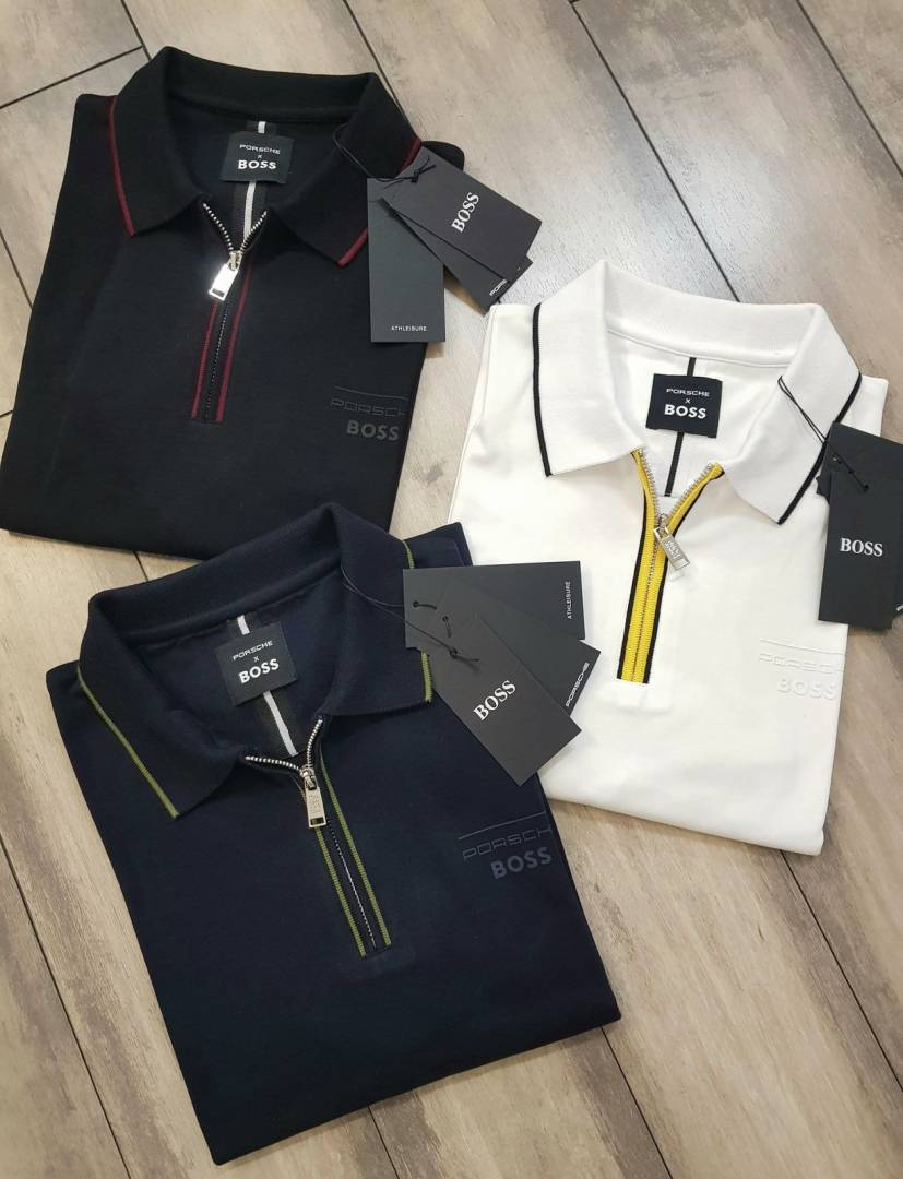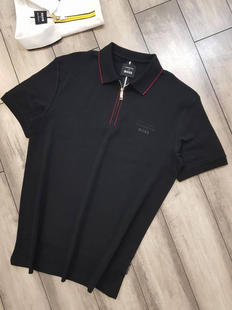 Boss x Porsche Edition Black Zipper Collar Neck Premium Polo T-shirt F2914-BL
