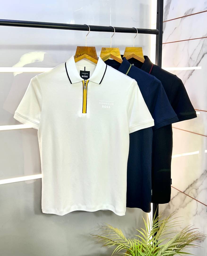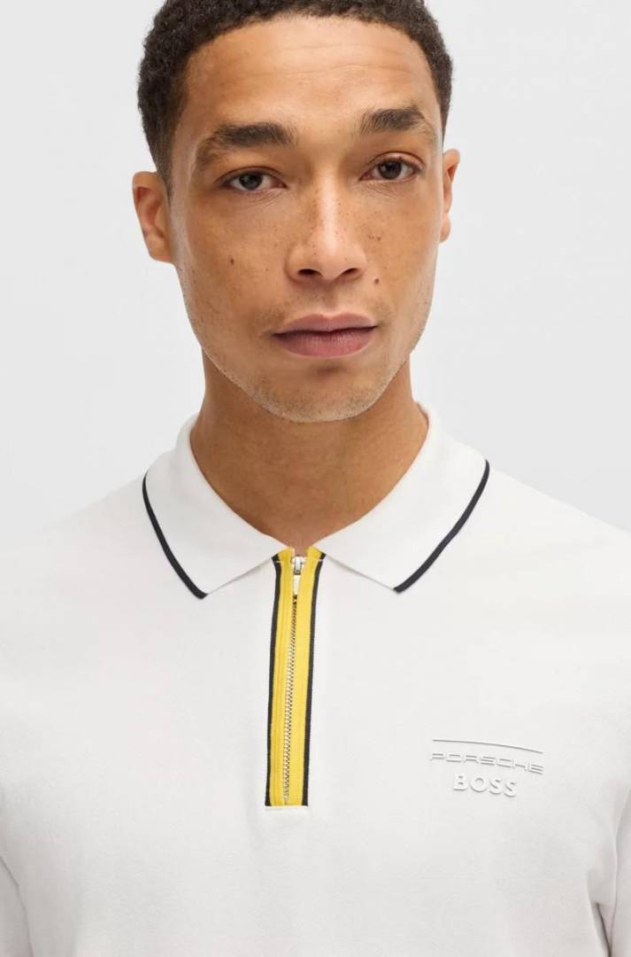 Boss x Porsche Edition White Zipper Collar Neck Premium Polo T-shirt F2914-WH
