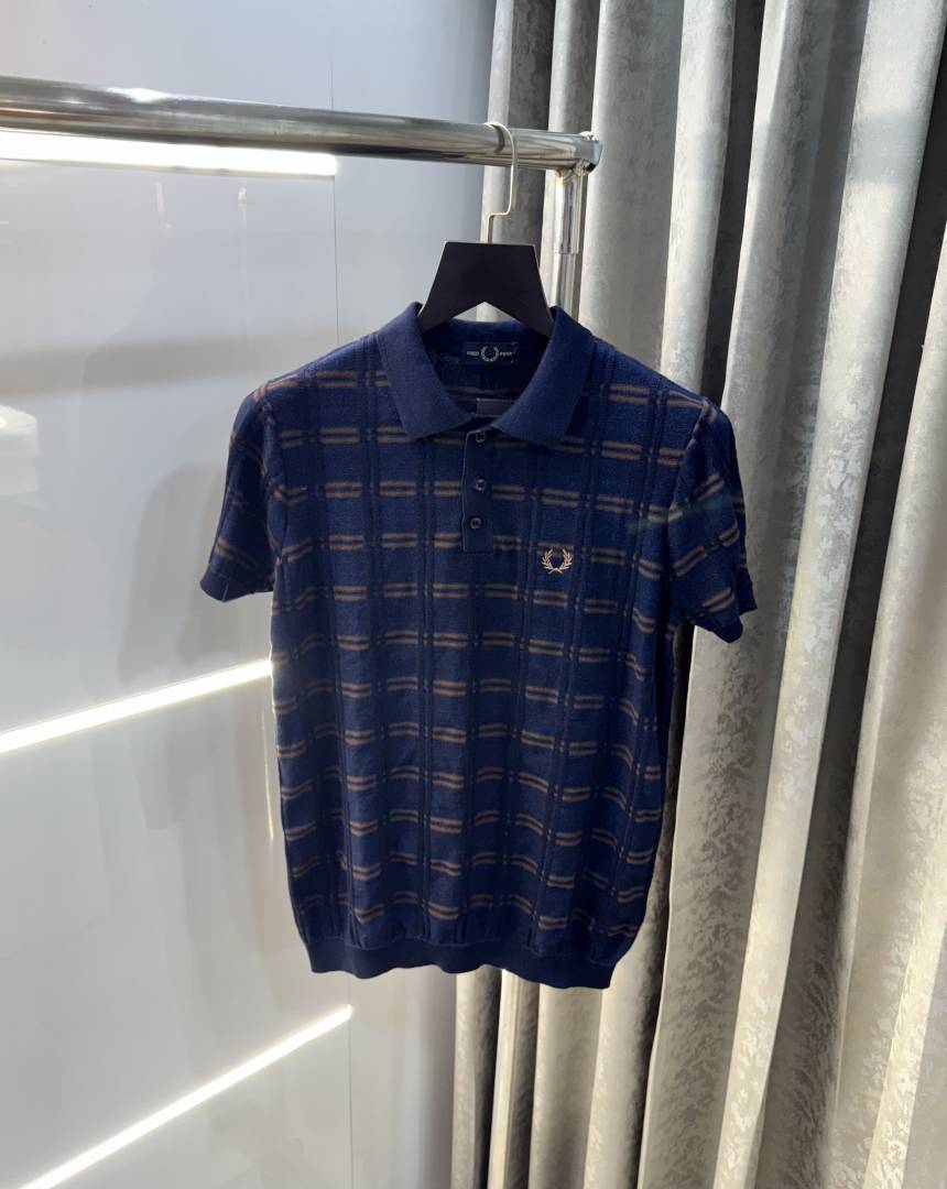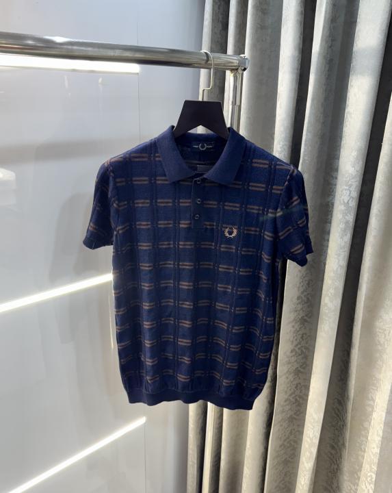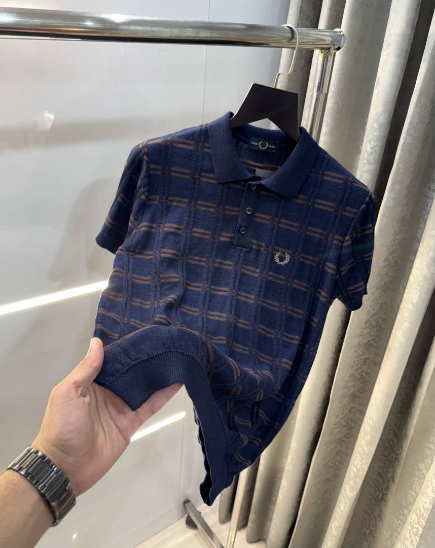 • Fredperry Navy Blue Premium Knitted Polo T-Shirt