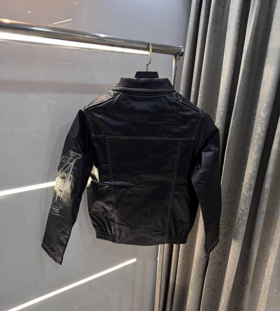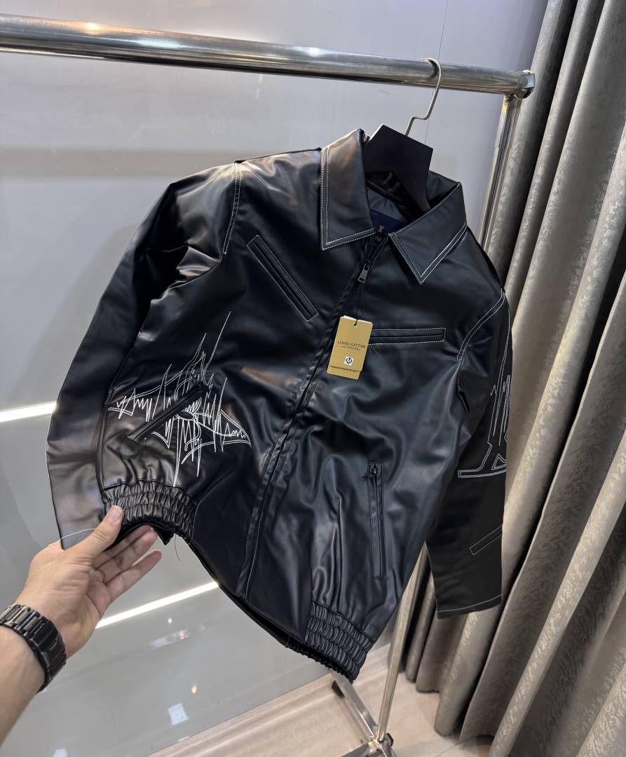 Louis_Vuitton Imported Super Premium Black Leather Zipper Jacket F3001