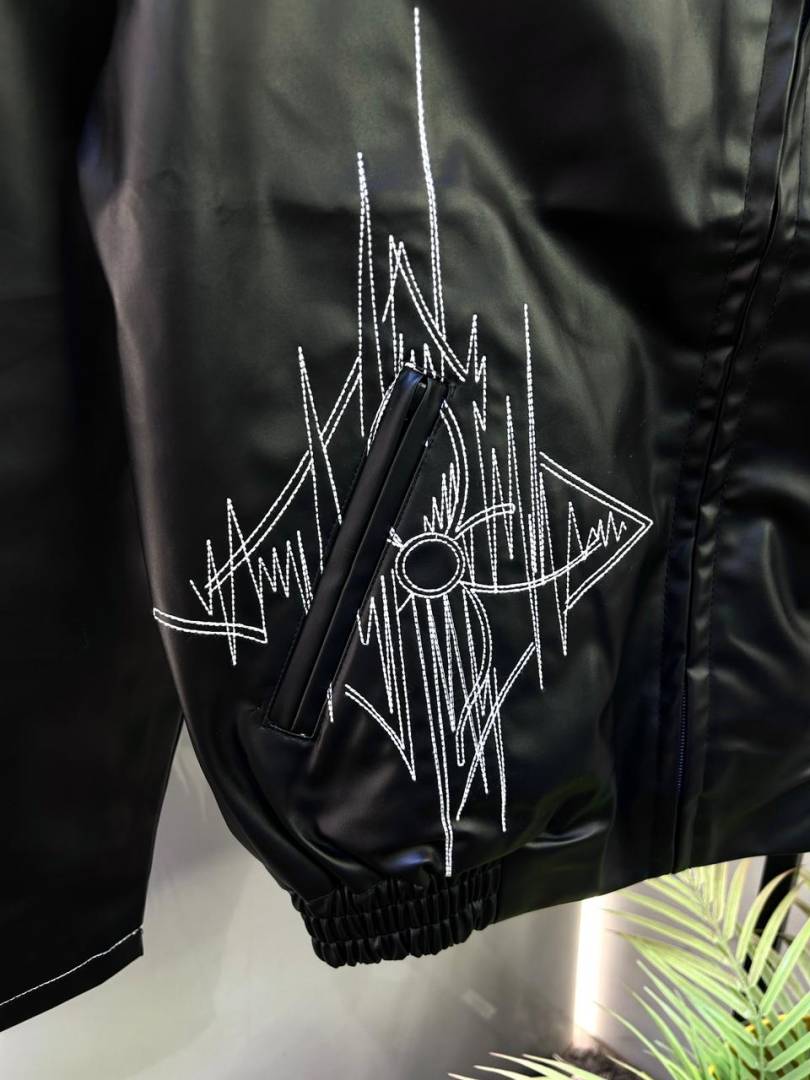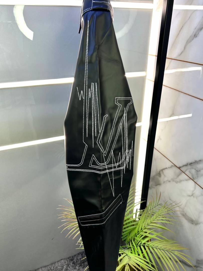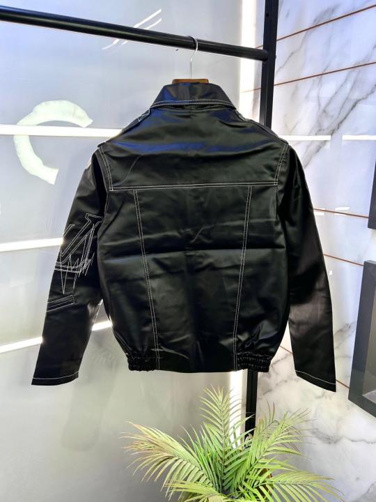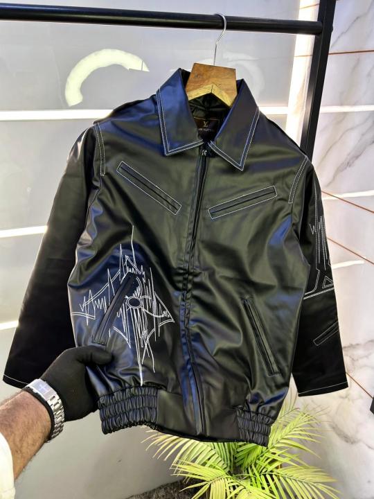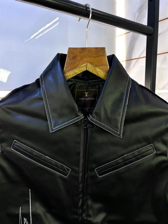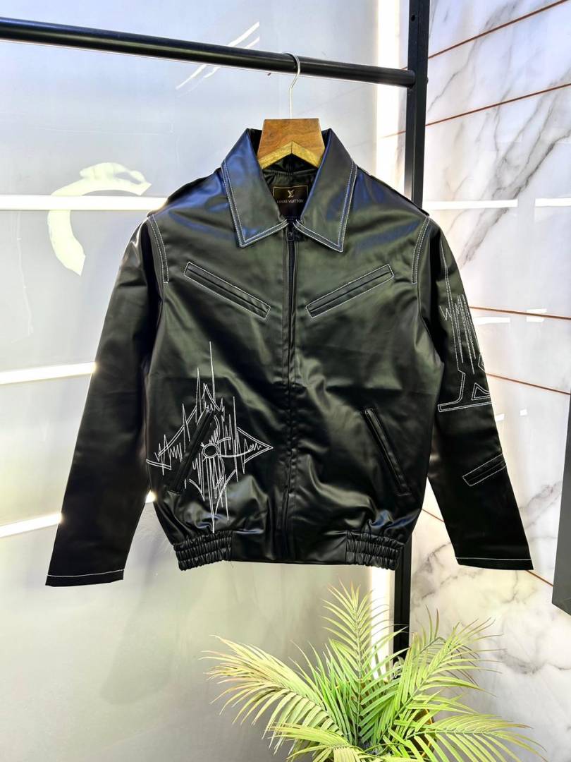 Louis_Vuitton Imported Super Premium Black Leather Zipper Jacket F3001