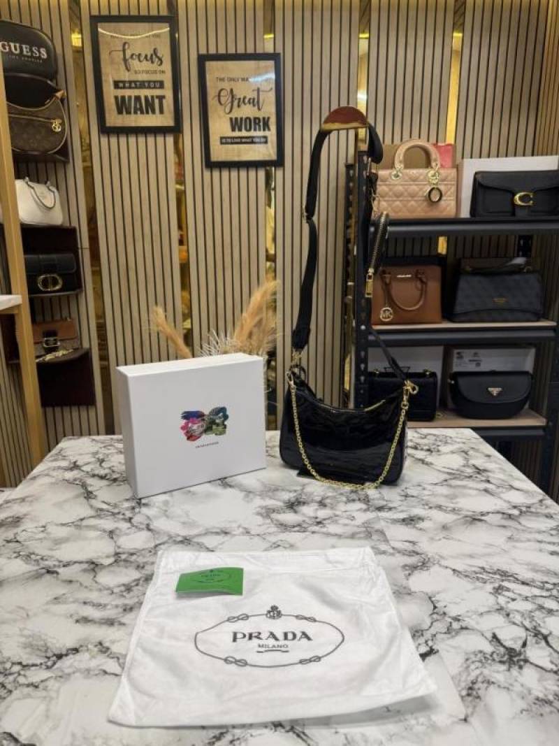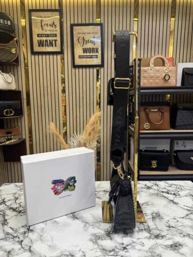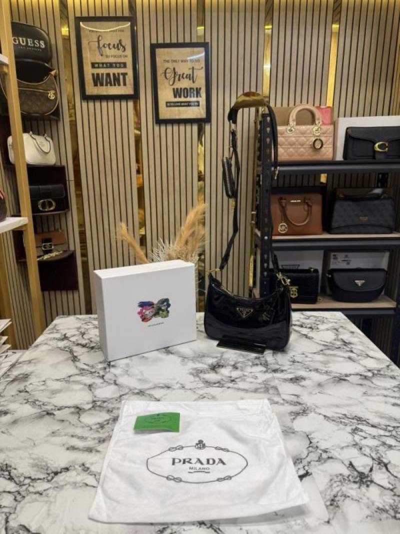PRAD_A RE EDITION GLOSSY BAG WITH OG BOX DUST BAG CARD BLACK