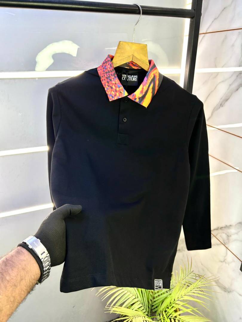 Versace Black Polo Neck Full Sleeves Premium Collar T-shirt F3095-B3