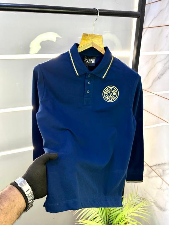 Versace Blue Polo Neck Full Sleeves Premium Collar T-shirt F3095-BU2